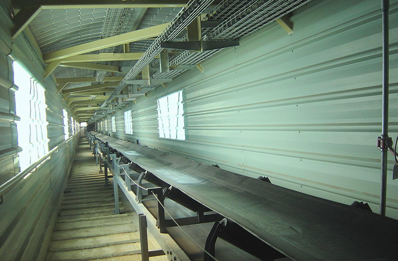 [Purpose] TD75 universal fixed belt conveyor (hereinafter referred to as TD type) is widely used in metallurgy, coal, transportation, and hydropower sectors to transport bulk materials or finished items due to its advantages of large conveying capacity, simple structure, easy maintenance, low cost, and strong universality. According to the requirements of the conveying process, it can be conveyed by a single machine, or by multiple machines or combined with other conveyors to form a horizontal or inclined conveying system. The TD75 model is used within the ambient temperature range of+40 ℃ to -10 ℃, and the temperature of the conveyed material is below 50 ℃. For occasions with special requirements such as explosion prevention, waterproofing, corrosion prevention, and heat and cold resistance, corresponding measures should be taken separately. Technical features and main parameters The capacity that TD75 can transport should be below 2.5t/m3. This series is divided into six specifications based on bandwidth: 500, 650, 800, 1000, 1200, 1400mm, etc. According to the driving power, it can be divided into 17 types: 1.5, 2.2, 3, 4, 5.5, 7.5, 11, 15, 18.5, 22, 30, 55, 75, 90, 110, 132, 160kw, etc. Divided by belt speed into eight types: 0.8, 1.0, 1.25, 1.6, 2.0, 2.5, 3.15, 4.0m/s, etc. The maximum conveying capacity of this series is shown in Table 1. The conveying capacity in the table is calculated under the conditions of material capacity f=1.0t/m3, conveyor inclination angle of OO~70 °, and material dynamic stacking angle of 30O. |
